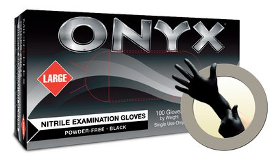 Nitrile Exam Glove 2X-Large^ Nitrile Exam Glove, ONYX* Powder-Free, 9.6 inch length, Medical/exam grade, Finish: Textured Fingertips, Type: Ambidextrous / Non-Sterile, Cuff: Beaded, Thickness: 3.5 mil (palm), 5.5 mil (finger), 2.8 mil (cuff), Tensile Strength: 42 Mpa, size: 2X-Large