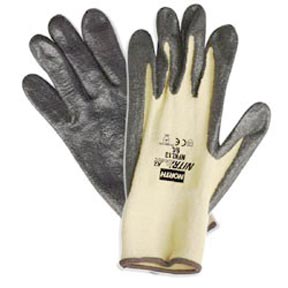 NITRITASK KL GLOVE^ BLEND OF KEVLAR AND LYCRA. BLACK FOAM NITRILE PALM COATED. SEAMLESS, KNIT WRIST. INDVIDUALLY LABELED, 12 PAIRS PER BAG, 12 BAGS PER CASE. SIZES: XS.