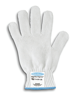 Polar Bear* Supreme Heavyweight Gloves^ This heavy weight glove is made of yarn that contains 3 strands of stainless. Heavyweight with no seams to irritate hands. Good for food processing, and meat packing. Style 74-301, White. Size 6