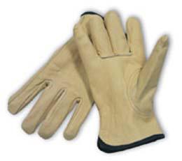 Cowhide Leather Top Grain Drivers Gloves^ Regular grade. With elastic back. Excellent dexterity and abrasion resistance. Keystone thumb pattern provides extra comfort and longer wear. Used in construction, machine operation, utility work, and other general applications. Size: medium.