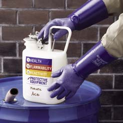 Nitrile Coated Gloves^ Cotton Interlock Liner. 100% Nitrile. 14 Inches Long. Water Tight. Royal Blue Color. Rough Grip. Medium. 12Pr/Pk.