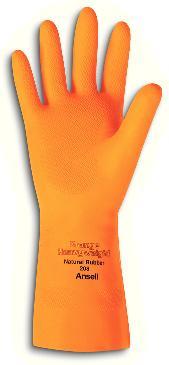 Natural Rubber Latex, Cottonflock-Lined Extra Heavy Duty Gloves^ Heavyweight Gloves Provide Added Protection Against Chemical And Physical Hazards Due To Their Increased Puncture/Cut Resistance And Tensile Strength. Style 198Orange, Diamond-Embossed, Flock-Lined, 29 Mil Thick, 13" Size 10