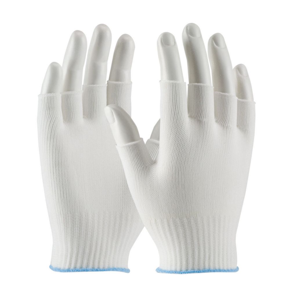 Knit Nylon, Fingerless, 13 Gauge, Light Weight Glove^ Seamless Construction Provides Comfort And Reduces Hand Fatigue. Low Lint. Can Be Used As Glove Liners. Fingerless Styles Provide Excellent Dexterity. Color Coded Hems For Easy Size Identification. Siz