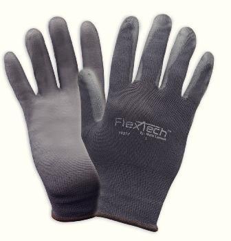 Nylon Lined Gloves, M^ Gray lightweight nylon liner, with polyurethane coated palm, Size medium