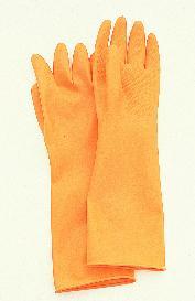 Natural Rubber Latex Gloves^ Orange, natural rubber latex gloves are case-hardened, chemical and puncture resistant. Powder-free, beaded cuff. Meet ASTM 739 permeation standard. 18 mil thickness. 38cm length. Size 9.