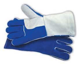 Welders And Foundry Gloves^ With One-Piece Back. Side Split With Cotton/Foam Lining And Sewn With Kevlar* Thread. Double Reinforced Palm And Thumb. Gray Inner Cuff. Men S Gloves. Color: Blue.