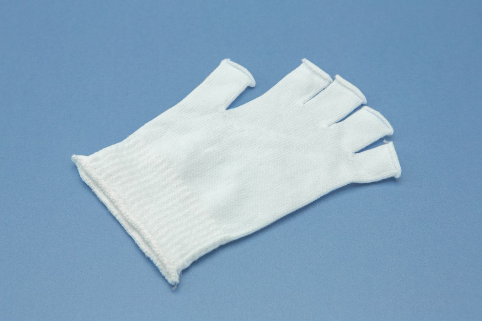 Berkshire polyester glove liners^ half finger, large, blue cuff, unlaundered, bulk packaging, no-run and non-ravel, ambidextrous. 200 per pack, 10 packs per case (2000/case)