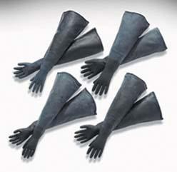 Economy Sleeve Gloves^ One-piece, seamless Neoprene construction sleeve gloves for protection against liquid or gas penetration. For use with Plexiglas* Glove Box (54848-120). Size: Medium.