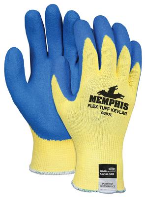 Kevlar* Gloves^ Flex Tuff* 10-gauge kevlar* gloves with blue latex palm/finger coating. Size: Medium.