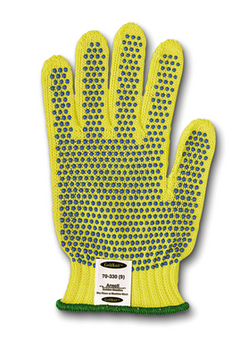 Glove^ 100% Kevlar. Medium weight. Size 8. Blue dots on both sides. String knit.