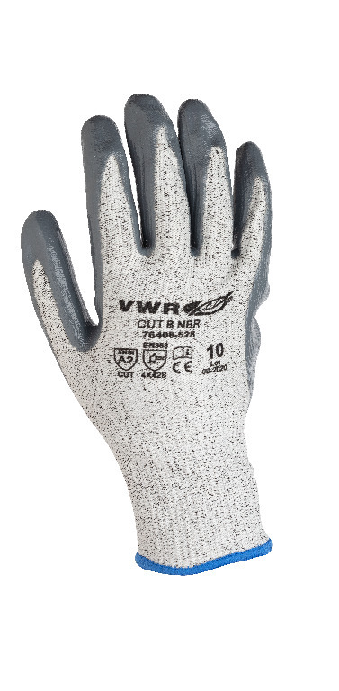 The VWR® cut protection glove with nitrile coating provides general cut protection for the widest range of applications., Ideal for use in environments handling items or tools with a risk of cuts, including material handling, assembly, maintenance, and janitorial applications., 02_BulletPoint: Nylon/spandex/polyester blend composition | Nitrile (NBR) coated | Gray knit glove with black coating, 08_Certifications: Meets requirements for ANSI A2 Cut Protection (Level B). EN388:2016. The CE marking on these products means that they meet the requirements of European directive 89/686/CEE or EU Regulation 2016/425 on Personal Protective Equipment concerning protection, comfort and strength. Certified by OKEO-TEX meeting Standard 100 certifying that no harmful substances are used in the production of these products., Glove color: Gray | Black, Glove size: 7, Latex/Latex-free: Latex-Free, Powdered/Powder-free: Powder-Free, The VWR® cut protection glove with nitrile coating provides general cut protection for the widest range of applications., Ideal for use in environments handling items or tools with a risk of cuts, including material handling, assembly, maintenance, and janitorial applications., 02_BulletPoint: Nylon/spandex/polyester blend composition | Nitrile (NBR) coated | Gray knit glove with black coating, 08_Certifications: Meets requirements for ANSI A2 Cut Protection (Level B). EN388:2016. The CE marking on these products means that they meet the requirements of European directive 89/686/CEE or EU Regulation 2016/425 on Personal Protective Equipment concerning protection, comfort and strength. Certified by OKEO-TEX meeting Standard 100 certifying that no harmful substances are used in the production of these products., Sterility: Non sterile, Gauge: 13, Finish: Nitrile coating, Cat. No.: 76408-522, Glove color: Gray | Black, Glove size: 6, Latex/Latex-free: Latex-Free, Powdered/Powder-free: Powder-Free, The VWR® cut protection glove with nitrile coating provides general cut protection for the widest range of applications., Ideal for use in environments handling items or tools with a risk of cuts, including material handling, assembly, maintenance, and janitorial applications., 02_BulletPoint: Nylon/spandex/polyester blend composition | Nitrile (NBR) coated | Gray knit glove with black coating, 08_Certifications: Meets requirements for ANSI A2 Cut Protection (Level B). EN388:2016. The CE marking on these products means that they meet the requirements of European directive 89/686/CEE or EU Regulation 2016/425 on Personal Protective Equipment concerning protection, comfort and strength. Certified by OKEO-TEX meeting Standard 100 certifying that no harmful substances are used in the production of these products., Sterility: Non sterile, Gauge: 13, Finish: Nitrile coating, Cat. No.: 76408-520, Glove color: Gray | Black, Glove size: 11, Latex/Latex-free: Latex-Free, Powdered/Powder-free: Powder-Free, The VWR® cut protection glove with nitrile coating provides general cut protection for the widest range of applications., Ideal for use in environments handling items or tools with a risk of cuts, including material handling, assembly, maintenance, and janitorial applications., 02_BulletPoint: Nylon/spandex/polyester blend composition | Nitrile (NBR) coated | Gray knit glove with black coating, 08_Certifications: Meets requirements for ANSI A2 Cut Protection (Level B). EN388:2016. The CE marking on these products means that they meet the requirements of European directive 89/686/CEE or EU Regulation 2016/425 on Personal Protective Equipment concerning protection, comfort and strength. Certified by OKEO-TEX meeting Standard 100 certifying that no harmful substances are used in the production of these products., Sterility: Non sterile, Gauge: 13, Finish: Nitrile coating, Cat. No.: 76408-530, Glove color: Gray | Black, Glove size: 10, Latex/Latex-free: Latex-Free, Powdered/Powder-free: Powder-Free, The VWR® cut protection glove with nitrile coating provides general cut protection for the widest range of applications., Ideal for use in environments handling items or tools with a risk of cuts, including material handling, assembly, maintenance, and janitorial applications., 02_BulletPoint: Nylon/spandex/polyester blend composition | Nitrile (NBR) coated | Gray knit glove with black coating, 08_Certifications: Meets requirements for ANSI A2 Cut Protection (Level B). EN388:2016. The CE marking on these products means that they meet the requirements of European directive 89/686/CEE or EU Regulation 2016/425 on Personal Protective Equipment concerning protection, comfort and strength. Certified by OKEO-TEX meeting Standard 100 certifying that no harmful substances are used in the production of these products., Sterility: Non sterile, Gauge: 13, Finish: Nitrile coating, Cat. No.: 76408-528, Glove color: Gray | Black, Glove size: 9, Latex/Latex-free: Latex-Free, Powdered/Powder-free: Powder-Free, The VWR® cut protection glove with nitrile coating provides general cut protection for the widest range of applications., Ideal for use in environments handling items or tools with a risk of cuts, including material handling, assembly, maintenance, and janitorial applications., 02_BulletPoint: Nylon/spandex/polyester blend composition | Nitrile (NBR) coated | Gray knit glove with black coating, 08_Certifications: Meets requirements for ANSI A2 Cut Protection (Level B). EN388:2016. The CE marking on these products means that they meet the requirements of European directive 89/686/CEE or EU Regulation 2016/425 on Personal Protective Equipment concerning protection, comfort and strength. Certified by OKEO-TEX meeting Standard 100 certifying that no harmful substances are used in the production of these products., Sterility: Non sterile, Gauge: 13, Finish: Nitrile coating, Cat. No.: 76408-526, Glove color: Gray | Black, Glove size: 8, Latex/Latex-free: Latex-Free, Powdered/Powder-free: Powder-Free, The VWR® cut