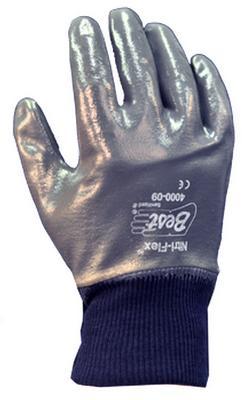 Nitri-Flex* Gloves^ Nitrile-coated for max wear and excellent cut, puncture, abrasion resistance. 2-piece, 100%cotton liner. Launderable. Textured grip for safety and ease of handling. Sanitized. Fully coated, knit wrist, interlock liner. Size: large.