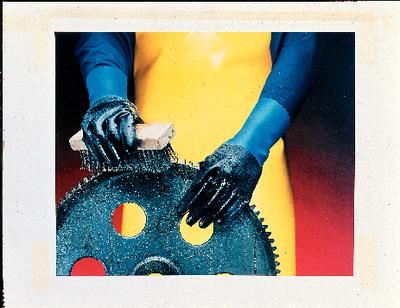 STANZOIL* Duplex* Neoprene Gloves^ Hand-specific neoprene-coated, knit-lined medium weight gloves for chemical processing and general maintenance. Insulates from heat and cold. Resists acids, caustics, solvents. Non-slip finish. Puncture-resistant. Blue w/ Black Overdip. 35cm long. Size Small.