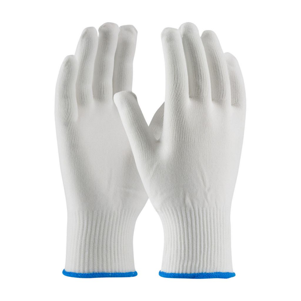 String Knit Gloves^ 13 gauge, lightweight gloves. 100% nylon. Absorb perspiration and comfortable to wear. Excellent for paint rooms. Also used as glove liner. Size: medium.
