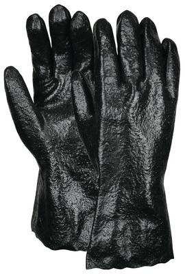 PVC Gloves^ Single dipped, rough finish PVC gloves. 12 inch length. Size: Large.
