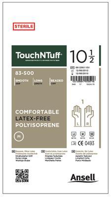 Gloves Touch N Tuff* 83-500 6.0^ 9 mil PF sterile polyisoprene glove 11 inch beaded cuff hand specific. One pr. per poly wallet, 10 pr. per inner poly bag; 5 inner polybags per master polybag, 4 master polybags (200 pr) per case.