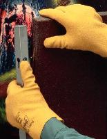 Fully-Coated PVC Gloves^ Cotton jersey liner. Breathable PVC coating. Slip-on design for easy donning and doffing. Yellow color, textured grip. Small.