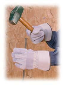 Silver Series "A/B" Grade Select Shoulder Split Cowhide Leather Palm Gloves^ White Canvas Fabric Back And Cuff, Knucklestrap, Rubberized Safety Cuff. Small.