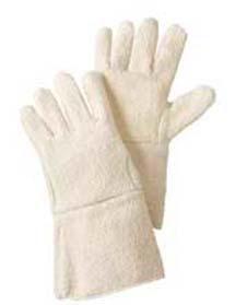 Glove, Heat Resistant^ Terrycloth cut and sewn Extra Heavyweight White terrycloth. Protects to 320deg F. Ambidextrous. Size XL Gauntlet