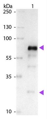 Alkaline Phosphatase Conjugated Affinity Purified Anti-Chicken Igg (H&L), Goat^ 1Mg. Minimum Cross Reactivity. Buffer: 0.05M Tris Chloride, 0.15M Sodium Chloride, 0.001M Magnesium Chloride, 0.0001M Zinc Chloride, 50% (V/V) Glycerol; Ph 8.0. Stabilizer: Bovine Serum Albumin. Sterile Liquid.