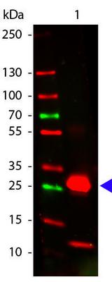 Affinity Purified anti-Rabbit IgG F(c) [Goat]^ Minimum Cross Reactivity to Human Serum Proteins. 5.0mg. Liquid (sterile filtered). Antibody Concentration: 5.0 mg/ml (by UV absorbance at 280 nm). Buffer: 0.02 M Potassium Phosphate, 0.15 M Sodium Chloride, pH 7.2. Stabilizer: None