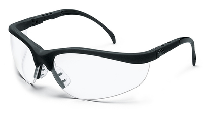 Klondike* Series Safety Glasses^ Strong, lightweight, scratch-resistant polycarbonate lenses with 11[degree] base curve filter out 99.9% UV radiation. Black matte-finished frame. Soft, secure gel nosepiece. Adjustable temples ensure comfortable fit. Meet ANSI Z87.1-1989. Clear anti-fog lenses.