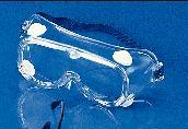 Safety Goggles^ Molded of soft, clear, flexible vinyl which conforms to the face and nose. Four vents eliminate fogging. Lens is clear acetate. 1.2cm wide adjustable elastic headband holds goggles firmly to head. Can be worn comfortably over prescription glasses.