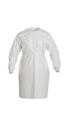 Tyvek* Isoclean* Gown^ Features Serged Seams, Bound Neck With Ties, Knit Cuff, Bound Ties At Center Front Waist, White Color And Come 30/Box.