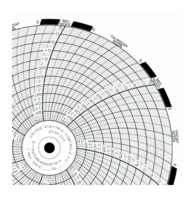 Graphic Controls Circular Charts, Diameter: 157.23mm, 6.19 in., Ink Writing Recorder Chart, Time Range: 7 Days, For Use With: For weksler, No. of Ranges: 1.0, Shape: Circular