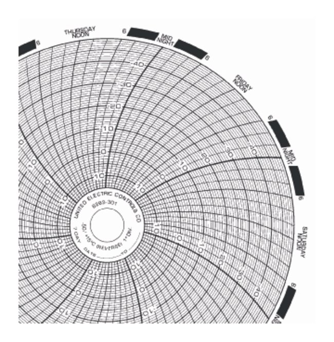 Graphic Controls Circular Charts, Diameter: 157.23mm, 6.19 in., Ink Writing Recorder Chart, Time Range: 7 Days, For Use With: For weksler, No. of Ranges: 1.0, Shape: Circular
