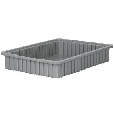 Grid Dividable Container 22-3/8X17-3/8X4 in^ Grid Dividable Container, Color: Grey, Material: Plastic, Features: create custom sized storage compartments, Strong stacking rims, Resists most solvents and chemicals, Secure and dust free, Maximum Capacity: 30 lbs, Dimension: 22-3/8X17-3/8X4 in