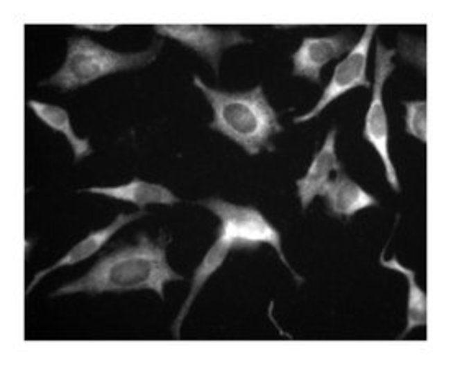 Glycogen Synthase Kinase-3β (GSK-3β) is a serine/threonine kinase that affects glycogen metabolism by phosphorylating and, thus, down-regulating the activity of muscle glycogen synthase. GSK-3β is identical to the Tau Protein Kinase 1 (TPK 1) which plays a role in the formation of the histopathological lesions of Alzheimer's disease (AD). In AD, many neurons contain intracytoplasmic neurofibrillary tangles (NFT) that are composed of ubiquitin and highly phosphorylated tau proteins, members of a family of microtubule-assocaited phosphoproteins. Phosphorylation of the tau proteins by GSK-3β converts them into paired helical filaments (PHF) which are found in NFT and degenerative neurites of senile plaques. This ability of GSK-3β to convert tau proteins to PHF has been demonstrated in vitro using primary cultures of embryonic rat hippocampal neurons.Immunofluorescence, Immunohistochemistry, Immunoprecipitation, Western Blotting