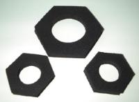 Here is the corrected text: Cylinder guards are made of sponge rubber in a hexagonal shape to prevent rolling. The center hole is sized for standard graduated cylinders. Hexagonal shape prevents rolling. Available for: * 1000 ml cylinders (Cat. No.: 15001-384) * 500 ml cylinders (Cat. No.: 15001-382) * 250 ml cylinders (Cat. No.: 15001-380) * 50 and 100 ml cylinders (Cat. No.: 15001-378) * 25 ml cylinders (Cat. No.: 15001-376) * 5 and 10 ml cylinders (Cat. No.: 15001-374)