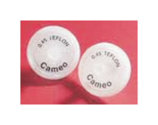 Cameo PTFE Syringe Filters with Glass Prefilters: 17mm Diameter, For use with aggressive acids, bases and for degassing solvents, Pack of 50