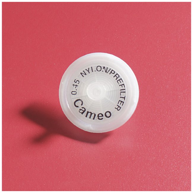 Nylon provides high throughput and low extractable levels without wetting agentsDesigned for preparation of viscous aqueous and solvent samples with high particulate loadsNylon membrane filter contains no wetting agents and is prerinsed in methanol, yielding extremely low extractable levelsCompatible with most organic solvents, including acetone, methylene chloride and acetonitrileManufactured by GVS Maine.Order InfoAvailable in two filter sizes: Cameo 17 (see cat. no. DGR02T1750) with a 17mm syringe filter for sample volume <18mL and Cameo 30 with a 30mm filter for sample volume <180mL.