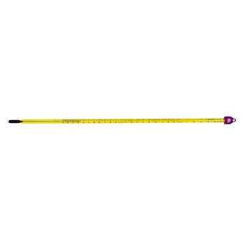 Specifications Additional Info EnviroKleen™ certified thermometers feature black, non-toxic, biodegradable, Enviro-Safe® liquid.Black liquid against lead-free, yellow back glass for easy readability and fewer reading errorsIdeal for use in chemical/petrochemical laboratories, universities, scientific institutions, food and beverage processing, pharmaceutical and medical industries, dairies, breweries and distilleriesManufactured and tested by our USA quality teamTraceable to NISTInclude a multi-language (English, French, German, Italian, Portuguese, and Spanish) Statement of Accuracy and TraceabilityShould you require an individual Thermometer Calibration Report, factory calibrated thermometers or custom calibration services are available. RangeDivisionsAccuracyImmersionLength1187M52-10/110°C1°C±1°CPartial Immersion: 50mm (2 ")200mm (7.9”)1187M53-10/150°C1°C±1°C, ±1.5°C above 100°CPartial Immersion: 50mm (2 ")200mm (7.9”)1187M5420/230°F2°F±1°F, ±2°F above 158°FPartial Immersion: 50mm (2 ")200mm (7.9”)1173G3520/300°F2°F±1°F, ±2°F below 32°F and above 158°F, ±3°F above 230°FPartial Immersion: 50mm (2 ")200mm (7.9”)1173G36-10/70°C0.5°C±0.5°CPartial Immersion: 76mm (3 ")300mm (12”)1220Z36-35/50°C0.5°C±1°CPartial Immersion: 76mm (3 ")300mm (12”)1173G37-20/110°C1°C±1°CPartial Immersion: 76mm (3 ")300mm (12”)1173G38-20/150°C1°C±1°CPartial Immersion: 76mm (3 ")300mm (12”)1220Z37-30/120°F1°F±1°FPartial Immersion: 76mm (3 ")300mm (12”)1173G390/230°F2°F±2°F, ±3°F above 212°FPartial Immersion: 76mm (3 ")300mm (12”)1173G400/300°F2°F±2°F, ±3°F above 212°FPartial Immersion: 76mm (3 ")300mm (12”)1173G41-10/260°C1°C±1°C, ±1.5°C above 100°C, ±2.5°C above 200°C, ±3°C above 230°CPartial Immersion: 76mm (3 ")350mm (14”)1173G4220/500°F2°F±2°F, ±3°F above 230°F, ±4°F above 392°FPartial Immersion: 76mm (3 ")350mm (14”)1173G43-10/110°C1°C±0.5°CTotal Immersion200mm (7.9”)1173G44-10/150°C1°C±1°C, ±1.5°C above 100°CTotal Immersion200mm (7.9”)1173G4520/230°F2°F±1°FTotal Immersion200mm (7.9”)1173G4620/300°F2°F±2°FTotal Immersion200mm (7.9”)1220Z34-35/50°C0.5°C±0.5°CTotal Immersion300mm (12 ")1173G47-20/110°C1°C±1°CTotal Immersion300mm (12”)1173G48-20/150°C1°C±1°CTotal Immersion300mm (12”)1173G49-30/120°F1°F±1°FTotal Immersion300mm (12”)1173G500/230°F2°F±2°FTotal Immersion300mm (12”)1173G510/300°F2°F±2°F, ±3°F above 212°FTotal Immersion300mm (12”)1173G52-10/225°C1°C±1°C, ±1.5°C above ±100°C, ±2°C above 200°CTotal Immersion350mm (14”)1173G5320/440°F2°F±2°F, ±3°F above 212°F, ±4°F above 392°FTotal Immersion350mm (14”)EasyRead_Blk Liq.pdf