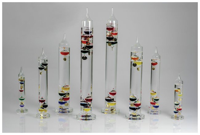 Durac Galileo Thermometers, Thermometers with colorful spheres which rise and fall to indicate temperature, Each