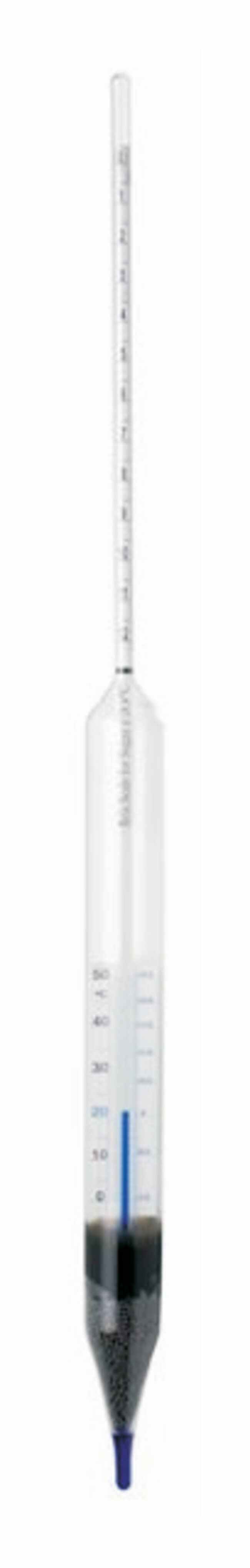 These combined-form hydrometers are used to measure % sucrose by weight in various ranges from 0° to 101° Brix, and include a convenient, built-in thermometer with a temperature scale of 0/50°C