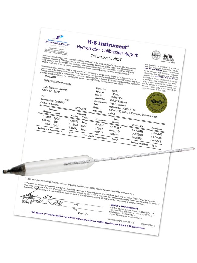 Durac™ Specific Gravity ASTM Calibrated Hydrometers, For Heavy Liquids, Each