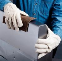 3M* Scotch-Brite* Ultrafine Hand Pad^ Ideal for final finishing and light cleaning. Abrasive mineral: ultrafine grade silicon carbide. Can be used with a hand pad block or on an in-line sander. Can be used with water or solvents. Will not rust. Dimensions: 15.2x22.9cm. Color: light gray.