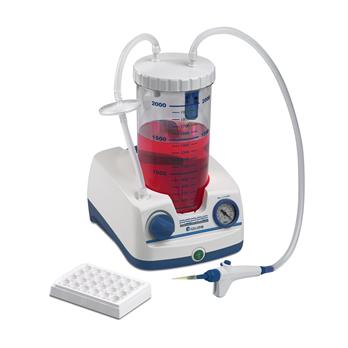Specifications The Accuris ASPIRE Laboratory Aspirator incorporates a quiet, maintenance-free pump inside a sturdy, yet compact base. The vacuum is fully adjustable, with a pressure gauge that displays the vacuum level, allowing full control of aspirating speed. The ASPIRE is an ideal choice for a wide range of laboratory aspirating applications, including removal of media from tissue culture vessels or plates, and supernatants. An ergonomic, hand held aspirating device is included, and holds standard 200 to 300ul disposable pipette tips.Comes complete with:Base with internal vacuum pump2 Liter, Polycarbonate Collection Bottle (autoclavable and break resistant)Antibacterial / Hydrophobic FilterSilicone TubingHandheld Vacuum Pipette2 Pipette cone adaptersThe collection bottle incorporates a reliable Overflow Protection Valve that closes off the tube to the vacuum in the event of a full bottle. In addition, the replaceable in-line filter protects the vacuum pump from contaminants and any moisture that comes through the bottle. Graduations on the collection bottle indicate the amount of fluid collected and when it's ready to be emptied. The Handheld Vacuum Pipette has an ergonomic design that's comfortable in the hand during prolonged use. Pressing the button applies the vacuum. The pipette accepts Pasteur pipettes, serological pipettes, and also comes with 2 accessory pipette cones. One cone is designed to accommodate 200/300ul pipette tips, the other has a thin, stainless steel capillary for fine control aspirating.Max. Aspiration14mL / sec.Max. Flow15L / min.Vacuum Range-30 to -750mbarNoise Level59.6 dbVacuum Pumpoil free pistonDimensions9.5 x 7.9 x 13.5 "Weight4.8 lbs / 2.2 kgElectrical115V, 60 HzWarranty2 year