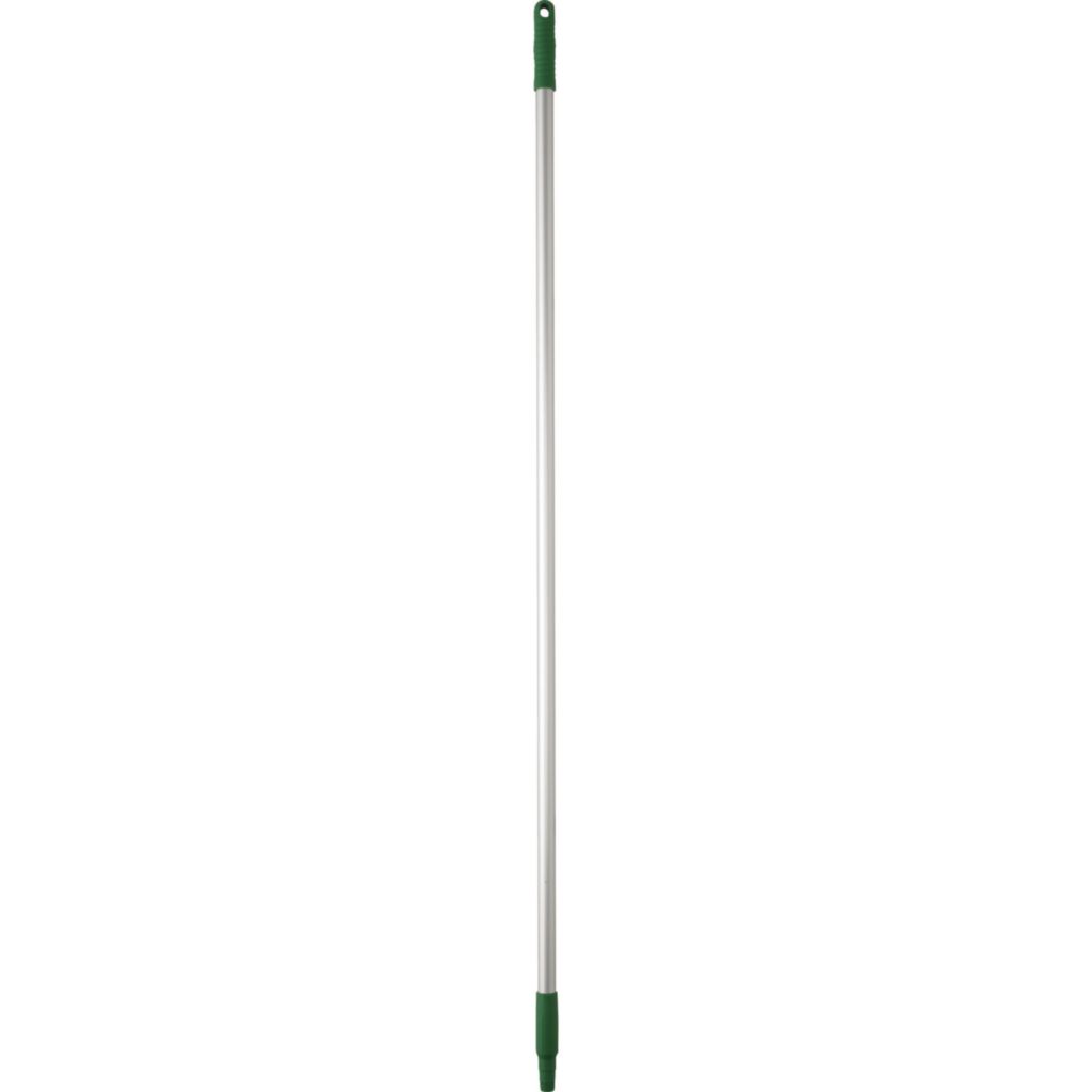 Vikan* Basic Broom Handle 59In^ Vikan* Basic Broom Handle, Material: Aluminium, Color: Green, Thread: Hygienic (Euro), Standard, Used With Squeegees & Scrapers, Handle With Attached Item Should Reach To Chin Of User To Prevent Occupational Back Injury, Autoclavable: 250F, Width: 1In, Length: 59I