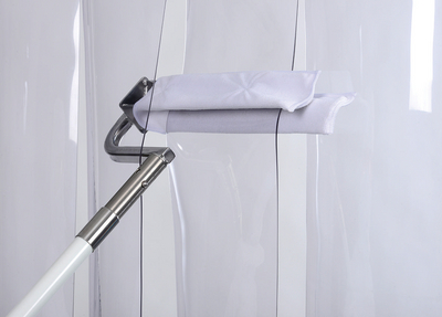 Softwall Strip Cleaner^ Softwall Strip Cleaner, Material: Stainless steel with QuickConnect handle, 37.5 - 65.5in(95-166cm), fiberglass.It enables easily and quick cleaning of both sides of 4in - 12in plastic strip curtains in a single pass.