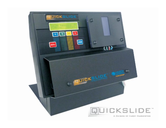 Represents a significant advancement in automated slide staining. Hardy Diagnostics™ QuickSlide™ HemaPRO Automated Hematology Stain Instrument features soft agitation action after staining