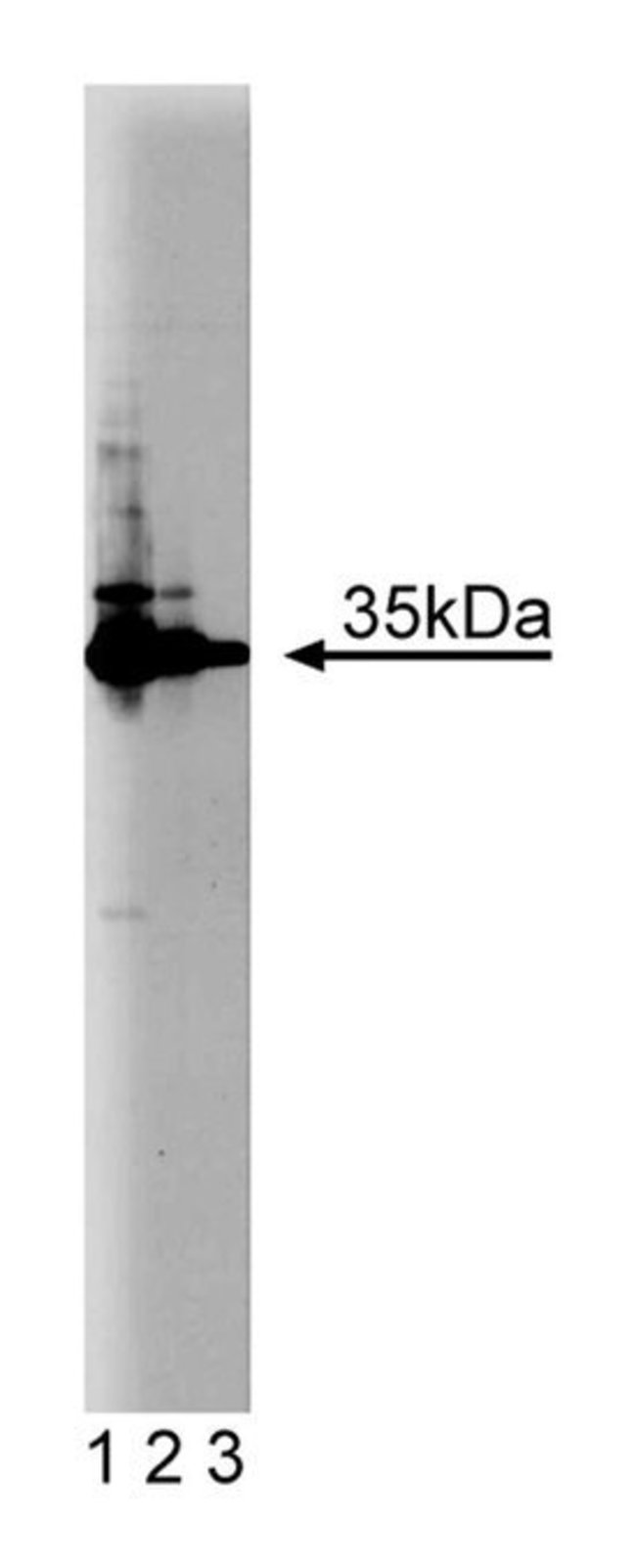 Cell-cell interactions in the immune system, mediated by membrane-bound antigen receptors, trigger a cascade of signaling mechanisms collectively known as the T-cell response. Upon antigen binding, cellular tyrosine kinases are activated resulting in the phosphorylation of HS1 or Lck-binding protein 1 (LckBP1), which is involved in thymic negative selection. HS1 is one of the earliest intracellular proteins to be tyrosine phosphorylated in response to antigen-receptor cross-linking in T cells. HAX-1 (HS1-associated protein X-1) is a 35kDa protein found associated with HS1 by co-immunoprecipitation assays and the two-hybrid system. HAX-1 is ubiquitously expressed and localized in the mitochondria, endoplasmic reticulum, and the nuclear envelope. The HS1-HAX-1 complex may be critical for signal transduction pathways initiated by antigen presentation to T cells.Immunofluorescence, Immunoprecipitation, Western Blotting