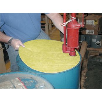 Premium yellow Hazmat Drum Tops absorb aggressive liquids from leaky drum dispensers. All Spillfyter® Drum Tops have pre-cut drum hole.
