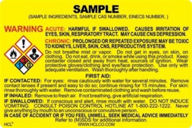 Tmah (Tetramethylammonium Hydroxide) GHS Label - 2 x 3 Adhesive Vinyl, Pack of 25