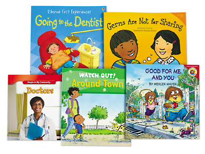 The perfect complement to our Health & Safety Theme Box, this terrific library has 5 super-engaging paperback books specially selected to help kids learn how to stay safe and develop healthy habits! Delightful illustrations and simple text lead children through visits to the doctor and the dentist, explain the importance of washing your hands and more.