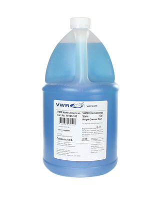 Hematology Wright Giemsa Stain for use in manual and automated procedures. Provides a more intense coloration of leukocytes in blood and bone marrow smears when compared to Wright Stain, gallon size.