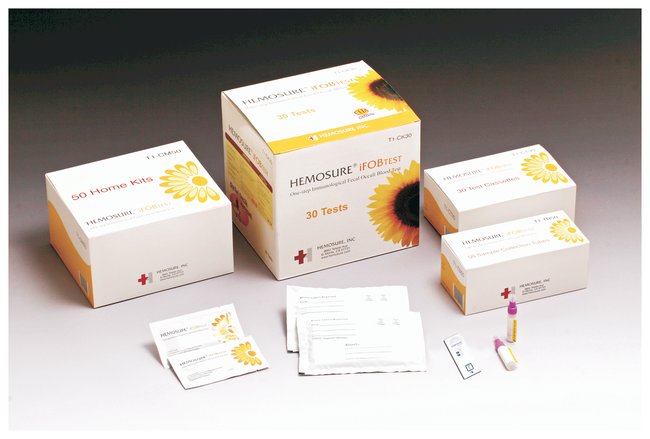 CLIA Complexity: WaivedCPT Codes: G0328QW (colorectal cancer screening); 82274QW (detection of blood in feces form)Sensitivity: 50ng hHB/mLSpecificity: over 96%Useful aid in the diagnosis and therapy of gastrointestinal disordersPatient-friendly for use in physicians' offices, labs, hospitals, clinics, or homesAs test sample flows up through absorbent device, the labeled antibody-dye conjugate binds to the hemoglobin in specimen, forming an antibody-antigen complexResults within five minutesPositive results: one band in the control (C) region, one band in the test (T) regionNegative results: only one band in the control (C) regionLow false positive resultsReaction components: citric acid, monoclonal and polyclonal antibody, mouse anti-HB antibodies 1 and 2, and goat anti-mouse IgG antibodyIf home kit mailers are not needed, they can be excluded from the order. Please contact your Fisher HealthCare account manager for details.Order InfoThe 10-test kit contains 10 collection bottles and 10 home kit mailers; 30-test kit contains 50 collection bottles and 50 home kit mailers.